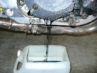 moi je vidange comme ça ,en laissant 2 vis pour éviter que les 4L d'huile sois béné parterre (il faut ouvrir le carter tout doucement ou alors faire une vidange normale)