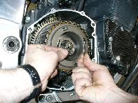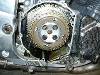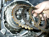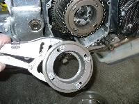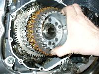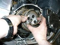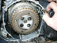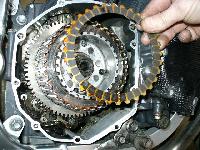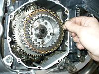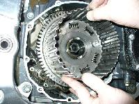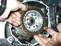 il faut retenir la cloche d'embrayage pour pas qu'elle vienne avec les disques et reste toujours en prise avec le vilo