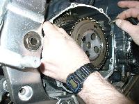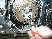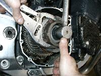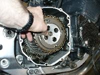 sinon desserrer l'écrou et sortir la noix d'embrayage,sa sera l'occasion de tout controler